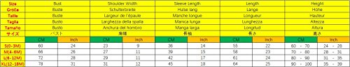 XL(12-18M)/長さ:64cm / 25.20inch、バスト:78cm / 30.71inch、袖丈:45cm / 17.72inch、身長:90-100cm。