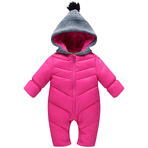 KINDOYO 新生児 子供たちワンピース 冬 ラブリー ベビー カバーオール アニマル ロンパース 男女ユニセックス 寝間着 厚い シャム フード付き ボディスーツ , ピンク