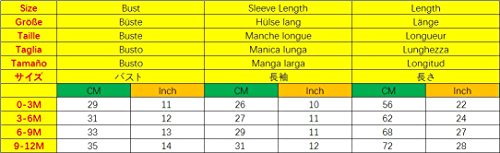 0-3M /長さ:56cm / 22.05inch、バスト:29cm / 11.42inch、袖丈:26cm / 10.24inch。