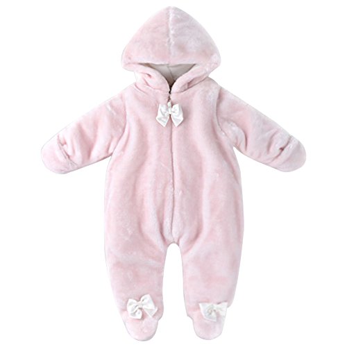 KINDOYO 新生児 子供たち 冬 ラブリー ベビー カバーオール アニマル ロンパース 男女ユニセックス 寝間着 厚い シャム フード付き ワンピース ボディスーツ , ピンク