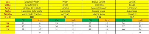 66(3-6ヶ月)/長さ:57cm / 22.44inch、バスト:30cm / 11.81inch、袖丈:27cm / 10.63inch、肩幅:23cm / 9.06inch。