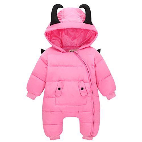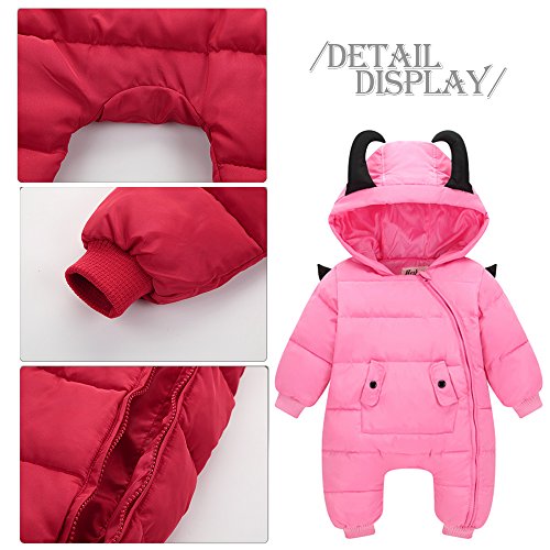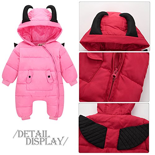 KINDOYO 新生児 子供たち ワンピース 冬 ダウンジャケットラブリー ベビー カバーオール アニマル ロンパース 男女ユニセックス 寝間着 厚い シャム フード付き ボディスーツ , ピンク