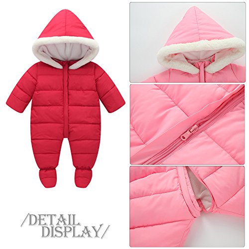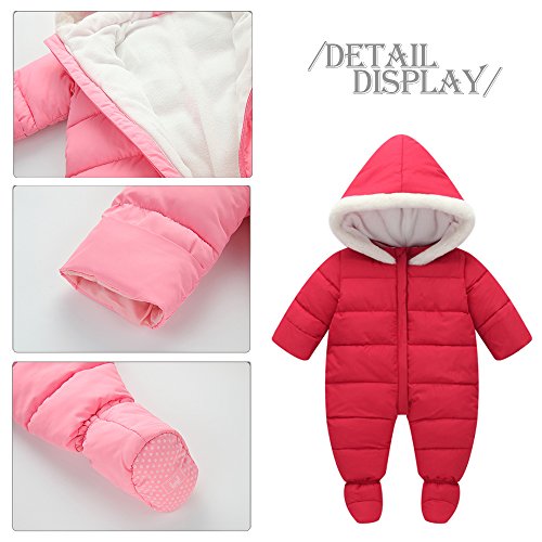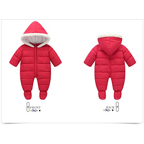 KINDOYO 新生児 子供たちダウンジャケットワンピース 冬 ラブリー ベビー カバーオール アニマル ロンパース 男女ユニセックス 寝間着 厚い シャム フード付き ボディスーツ , レッド
