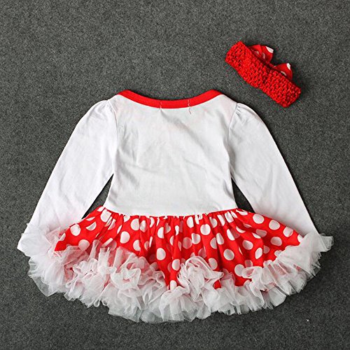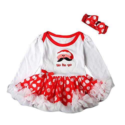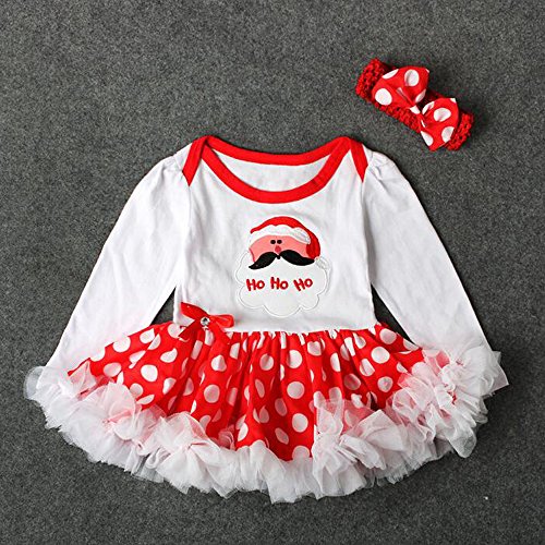 KINDOYO 赤ちゃんの女の子 クリスマスレースドレス幼児王女のファンシーパーティーコスチュームロンパー長袖 / 半袖 のダンスサンタ子供 ドレス / セット ヘッドバンド