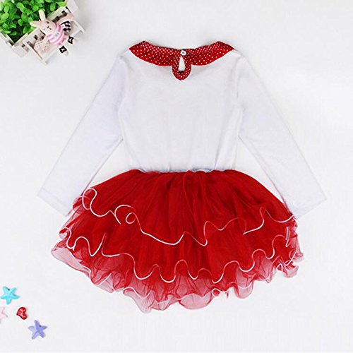 KINDOYO 赤ちゃんの女の子 クリスマスレースドレス幼児王女のファンシーパーティーコスチュームロンパー長袖のダンスサンタおちょう結びの 子供 ドレス