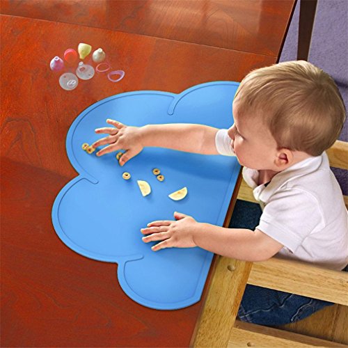 kingzhuo KidsポータブルシリコンクラウドプレイスマットSlip Resistantベビー乳児プレートテーブルマットfor Toddlers高椅子Tiny DinerポータブルRoll Up (ブルー)