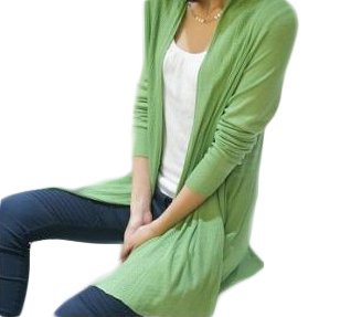 薄手 美ラインロングトッパーカーディガン 前開き 全8色 マタニティ (緑)
