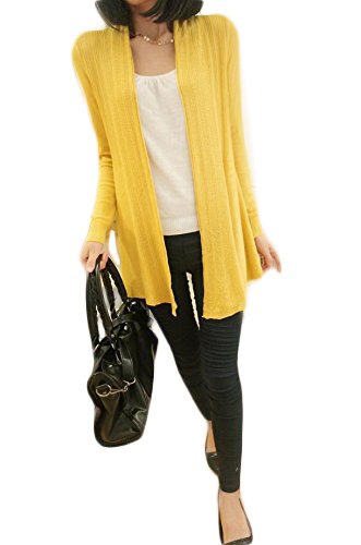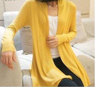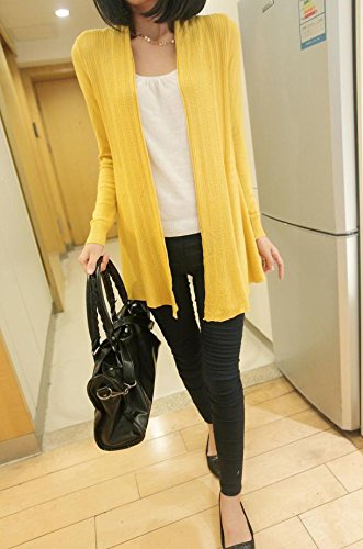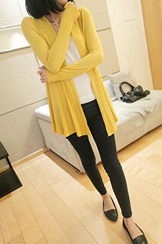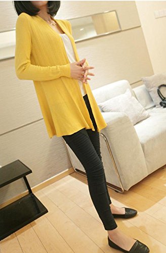 薄手 美ラインロングトッパーカーディガン 前開き 全8色 マタニティ (黄色)