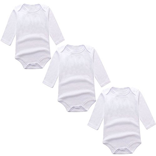KISBINI ベビー服 赤ちゃん 服 ベビー ロンパース 男の子 女の子 長袖ボディースーツ 3枚セット(0-24ヶ月) (18-24ヶ月, ホワイト)