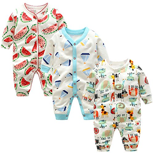 KISBINI ベビー服 長袖 赤ちゃん 服 ベビー ツーウェイオール 男の子 女の子 新生児 綿 春夏秋冬 出産祝い ギフト 退院 3点セット(0-12ヶ月) (6M(3〜6ヶ月), 3点セット 1)