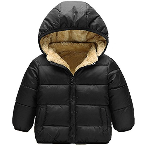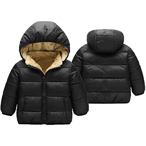 KISBINI キッズ ダウンコート 子どもダウンジャケット 子供綿コート ジュニア綿ジャケット リアルファー 男女兼用 ダウンコート (適当90cm, ブラック)