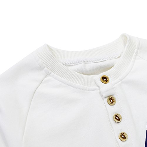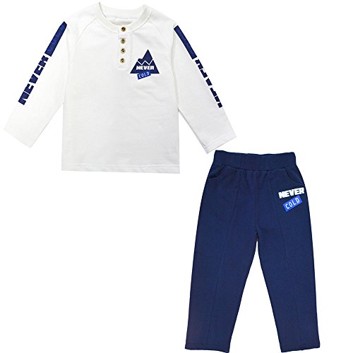 KISBINI キッズ服 春秋 子供 ジャージ ダンス 上下セット 男の子 長袖 綿 Tシャツ パンツ セット(身長110-150cm) (150cm, ホワイト)