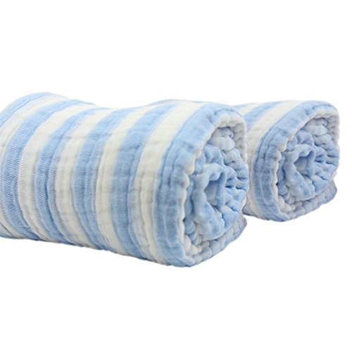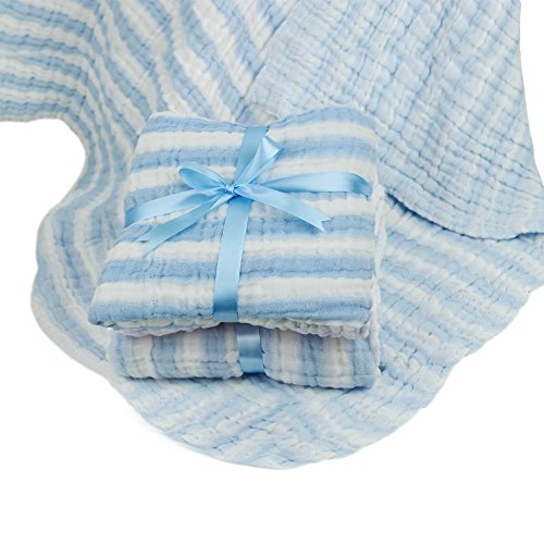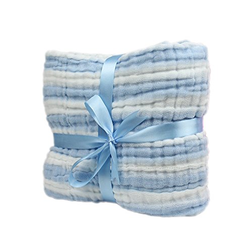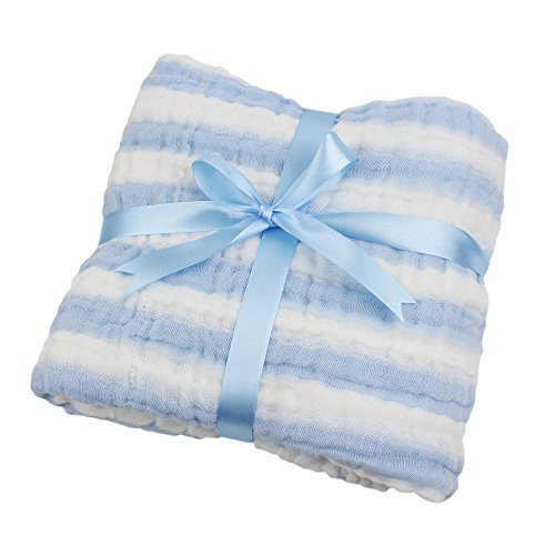 ガーゼおくるみ ベビーケット バスタオル 6重ガーゼ ふわふわ 柔らか 出産祝い ギフト プレゼント 男女共用 110cm*110cm 縞柄 ブルー