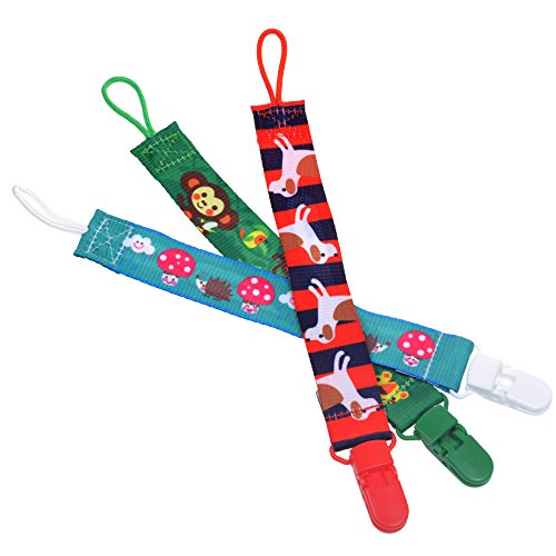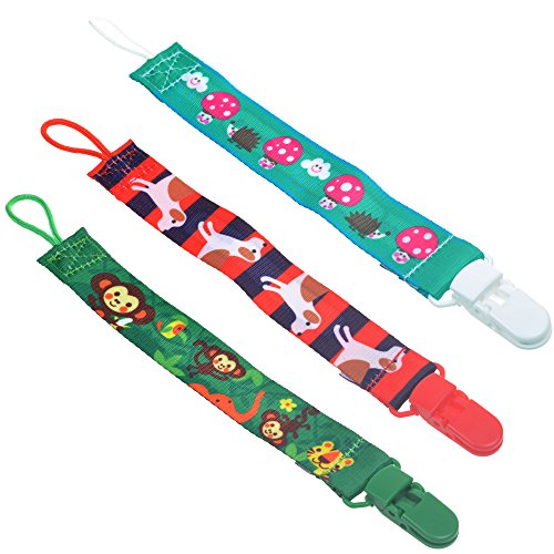 Package included 3 pcs Pacifier clip;Also good for teething Ring;Keeps pacifier attached to baby's clothing;Cotton strap and sturdy clip;Strap length: 7 inch