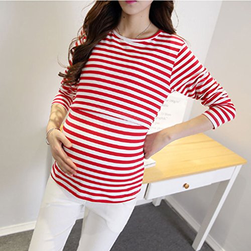 KLUMA Tシャツ レデイース 授乳服 マタニティ 授乳口 長袖 すっきりネックライン 授乳トップス マタニティウェア 柔らかコットン 縞模様