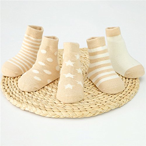 KLUMA 靴下 子供 コットン ベビー 幼児用 キッズ 女の子 男の子 ベビーソックス 通気性 快適 シンプル 柔らかい 吸湿速乾 抗菌 防臭 可愛い 5足セット カーキ