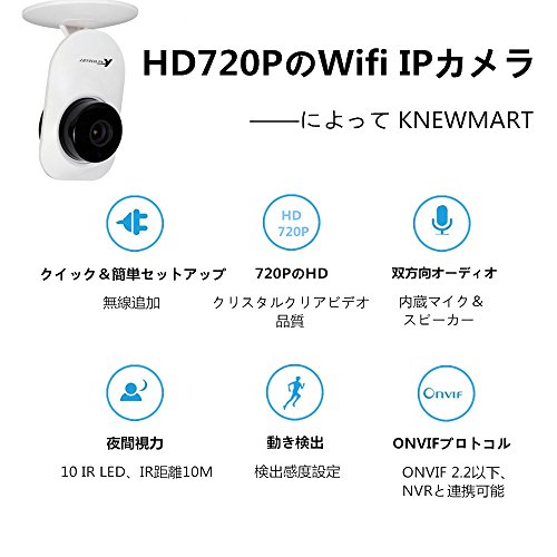 ipカメラ wifi無線 ONVIF 720P高画質 暗視機能 双方向音声 防犯室内用監視カメラ ベビーモニター KNWEMART