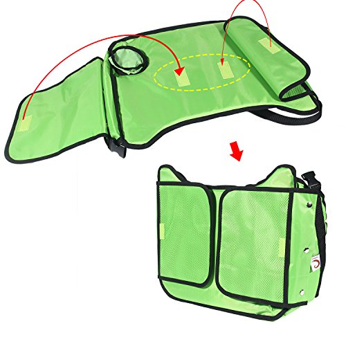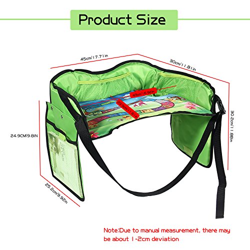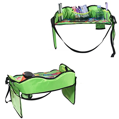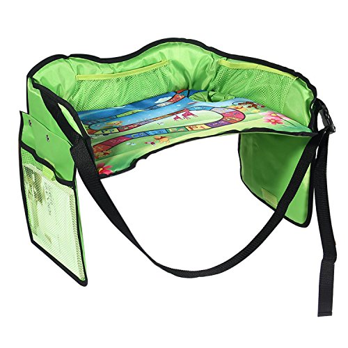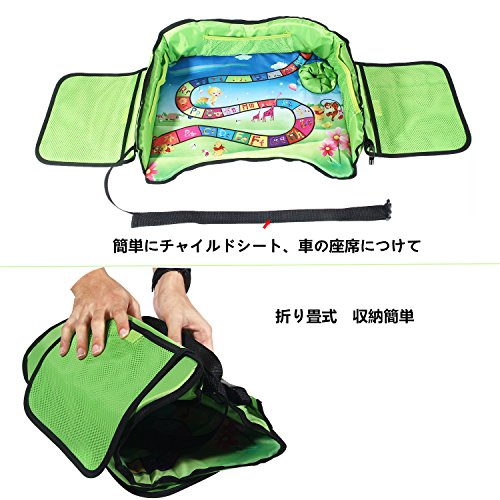KOBWA 子供用車 テーブル 折り畳式 簡易 おもちゃ収納ポケット 座席サイドテーブル ボトル iPad ホルダー 車載クリーナー 食事 遊び 読書 グリーン