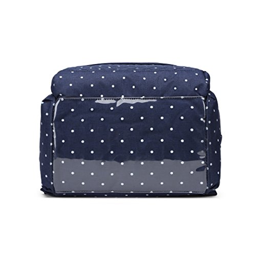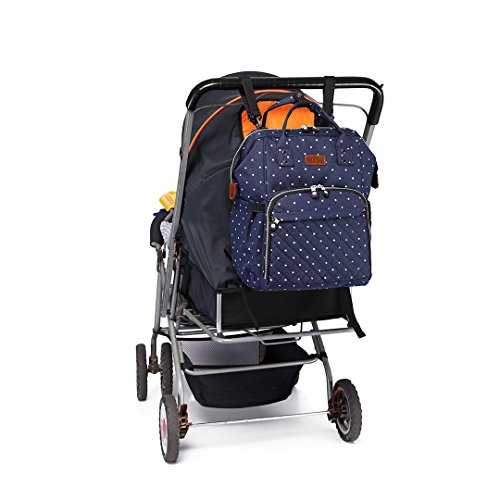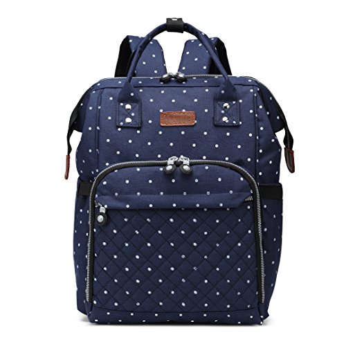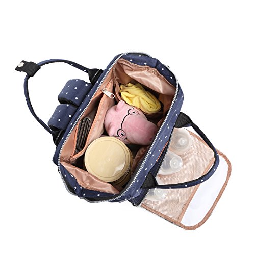 ママバッグ ベビー用品収納バッグ 大容量 底が防水で汚れにくい 多機能旅行用 マザーズバッグ 防水 哺乳瓶ママリュック おむつ収納 (水玉ネイビー)