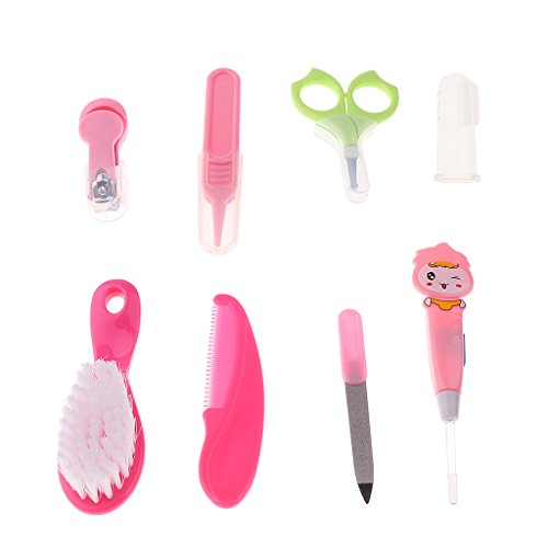 KOZEEY 8本 プラスチック製 赤ちゃん 子供 爪 ヘア ケア グルーミング ブラシ キット 全2色 - ピンク