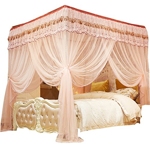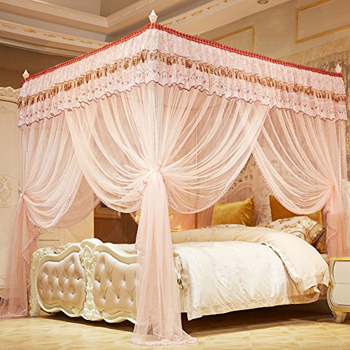kqcnifvnklmソリッド4つコーナーMosquito Netベッドキャノピー、メッシュ韓国プリンセスベッドキャノピー3ドアステンレススチール暗号化Top Mosquito Net Twinch2 ピンク KQCNIFVNKLM