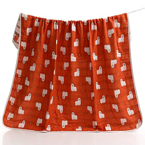 KRODLO ベビータオル ガーゼタオル ガーゼケット 柔らかい 肌さわり抜群 保温性 吸水 通気 ふわふわ白い おくるみ ベビーケット バスタオル 110*110cm 6重ガーゼ 綿100% (レッド)