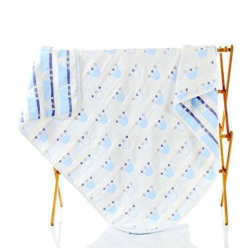 KRODLO ベビータオル ガーゼタオル ガーゼケット 柔らかい 肌さわり抜群 保温性 吸水 通気 ふわふわ白い おくるみ ベビーケット バスタオル 110*110cm 6重ガーゼ 綿100% (ブルー)