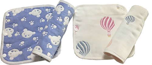 - かわいい アニマル 柄の8重ガーゼの よだれパッド 2枚、6重ガーゼの よだれパッド 2枚、共に4枚セットです。2組あれば、汚れたときに交換できて便利です。