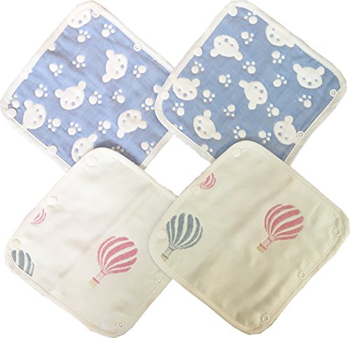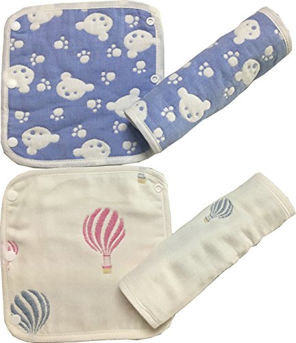 krodlo よだれ カバー 綿 ガーゼ ホック 式 サッキング パッド 細菌防止 綿100% 6重ガーゼ 2枚 8重ガーゼ 2枚 (4枚 セットグループ2)