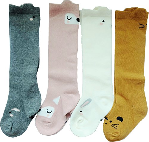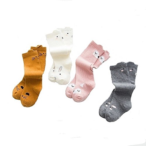 KRODLO 2017春夏 おしゃれ ベビー ソックス 100%綿製 中筒純綿 可愛い綿の靴下 中筒靴下 子供 抗菌防臭 ふわふわ 4足セット (80-100cm, 4枚 動物)