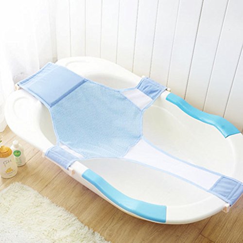 KRY ベビーバス 赤ちゃん スリング メッシュ お風呂 バスシート 調整可能 (ブルー)