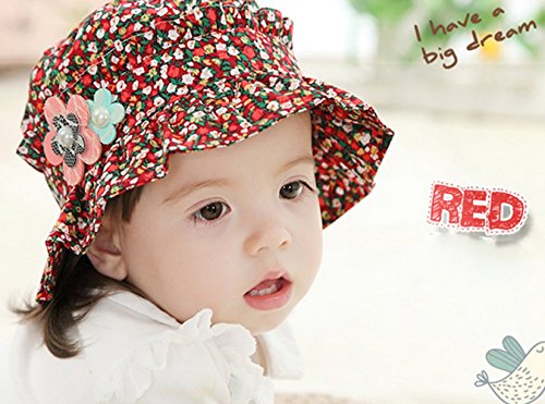 KRY 赤ちゃん 帽子 日よけ 子供サンバイザー 赤ちゃんキャップ ベビー ハット 帽子 ベビー 春 夏 ギッズ キャップ 子供用帽子 バケットハット ハット女の子1歳~4歳 可愛い おしゃれ 赤ちゃん 幼児 帽子 ガールズ ハット 綿生地 吸汗速乾 遮光 つば付バイザー アウトドア お出かけ用 (レッド)