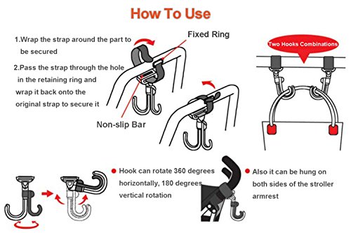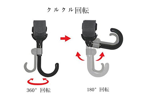 - 様々なものをしっかりと掛けられ、ベビーカー以外にも、自転車のハンドル部分、スーツケースなど幅広くマルチに使用可能、日常生活に活躍できるフックです。