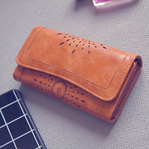 ファッション女性の財布 - 中空PUレザーヴィンテージスタイルの財布レディースレトロなハンドバッグの財布カードホルダー