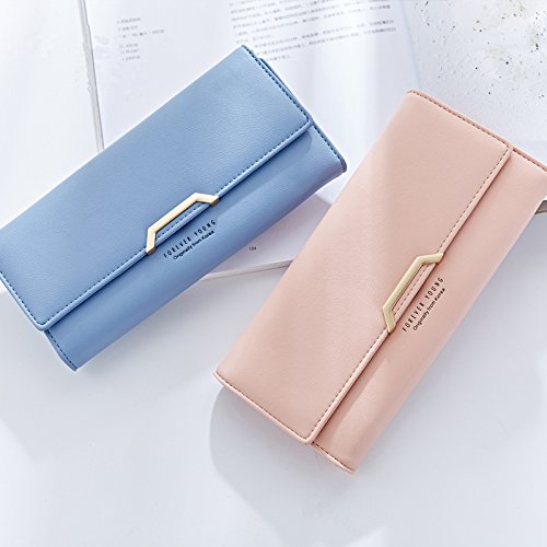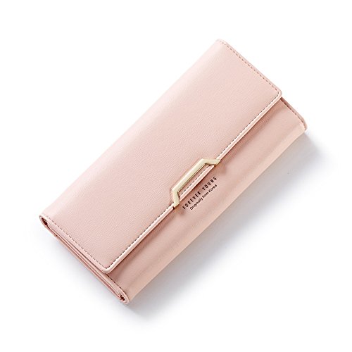 最新レディースウォレット - PUレザーレディースウォレットカードホルダーレディースバックル財布ロングパラグラフクラッチバックルウォレット (ピンク)