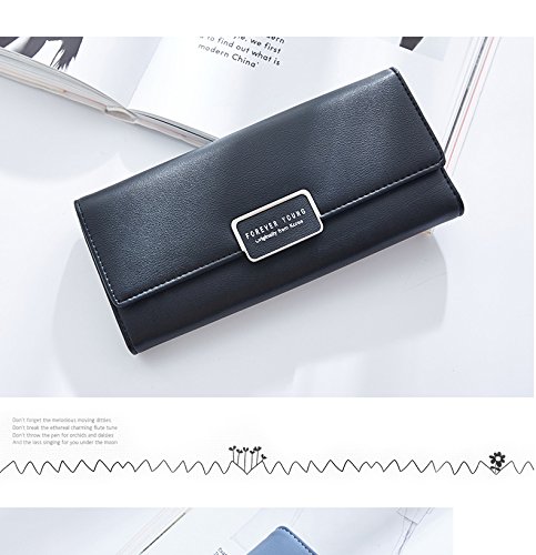 最新レディースウォレット - PUレザーレディースウォレットカードホルダーレディースバックル財布ロングパラグラフクラッチバックルウォレット (黒)