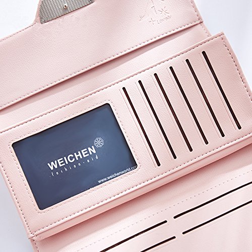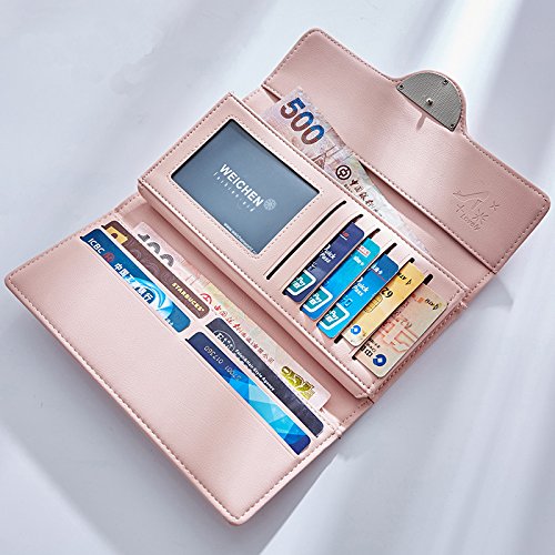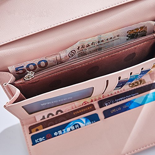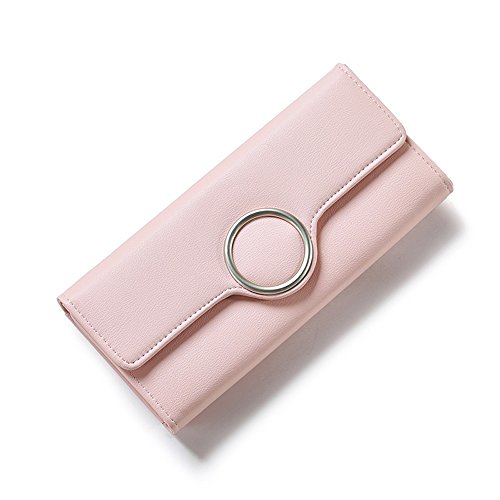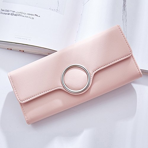 最新レディースウォレット - PUレザーレディースウォレットカードホルダーレディースバックル財布ロングパラグラフクラッチバックルウォレット (ピンク)