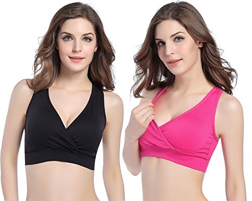 - Nursing Sleep Bra, KUCI? Night time Women Seamless Nursing Bra Soft Maternity Bra (M, Black+Rose Red/2Pack)