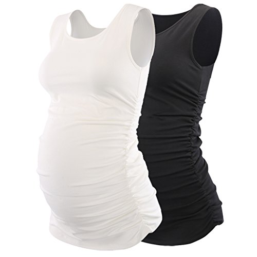 マタニティ授乳タンクトップ、KUCIレディース基本ベストSide Ruchedスクープネックノースリーブ妊娠チュニック母キャミ US サイズ: L
