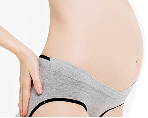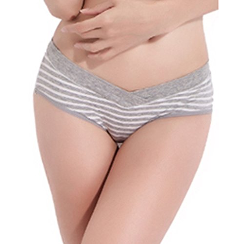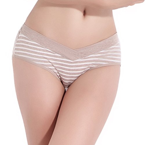 マタニティ下着,KUCI女性の妊娠中のマタニティ ショーツ ローライズU字型 産前 産後 綿,3枚組 (L, Grey+Grey Stripes+ Khaki Stripes/3Pack)
