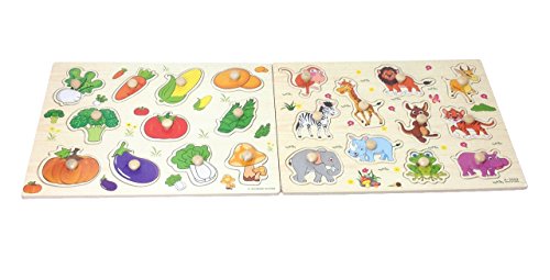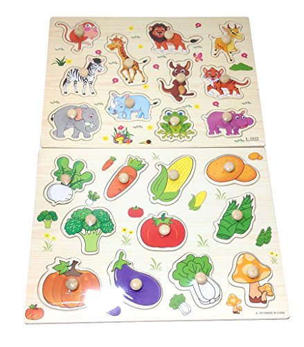 【KUENTAI】木製パズル 数字 アルファベット 2点セット 子供 知育玩具 遊びながら数字とアルファベットが学べます おもちゃ キッズ 赤ちゃん (動物&野菜)