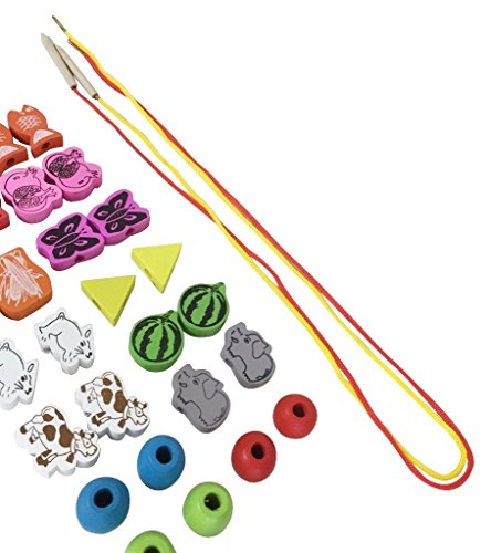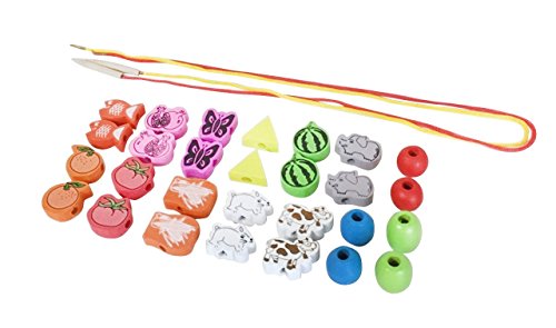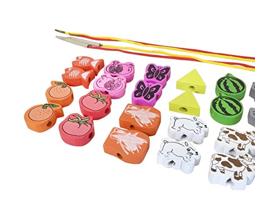 【KUENTAI】フルーツ 果物 アルファベット 数字 計算 糸引き ピースゲーム 雑貨 おもちゃ キッズ ひもとおし 知育玩具 積み木 木製 ひも通し (フルーツ)