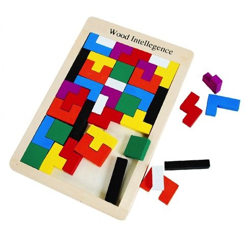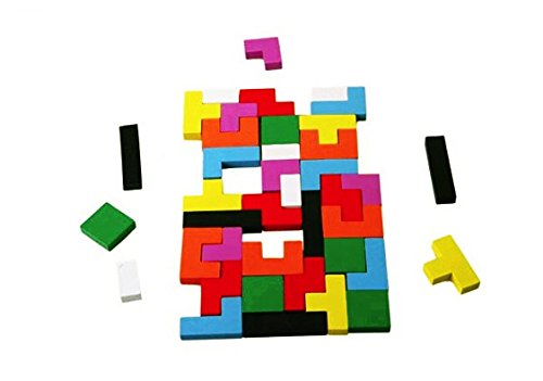 【KUENTAI】テトリス風 木製 パズル 雑貨 おもちゃ キッズ 積み木 組み合わせ タングラム 知育パズル 積み木 (1)