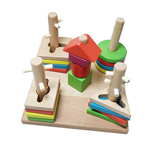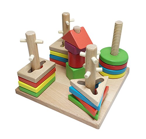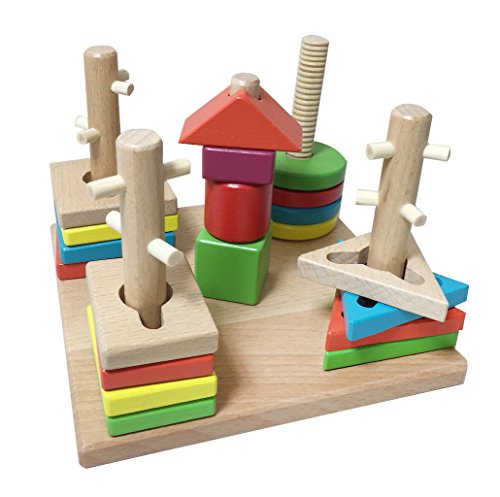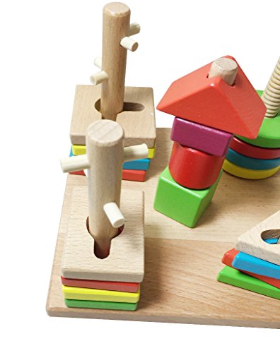 - 色んな形がございますのではめこみなどで知能を伸ばし構成力など伸ばせることができます!また色をたくさん使ってる木製のおもちゃなので色彩感覚も伸ばせます。