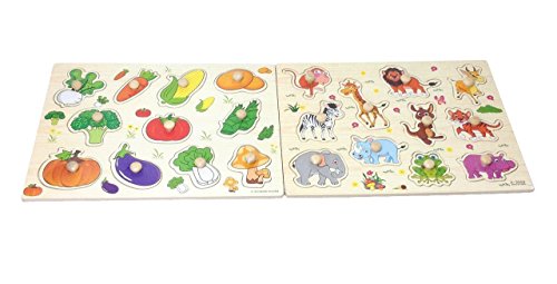 【KUENTAI】木製パズル 子供 知育玩具 数字・図形・果物・野菜・動物・×数字 アルファベット カラフル プレゼントにも おもちゃ キッズ 赤ちゃん (野菜&動物)