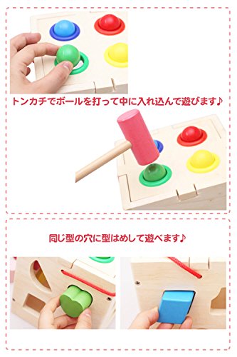 - 1歳からの知育教育にオススメです。上部のボールはトンカチで叩くとボールが中に入る仕組みになっています。お子様の創造性を伸ばしたり、また夢中になって遊べると思います。
