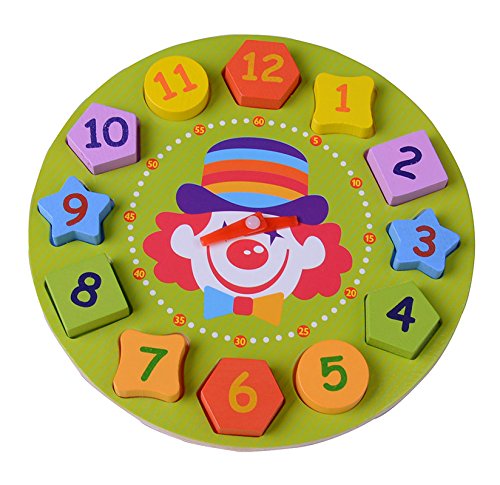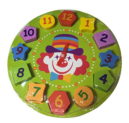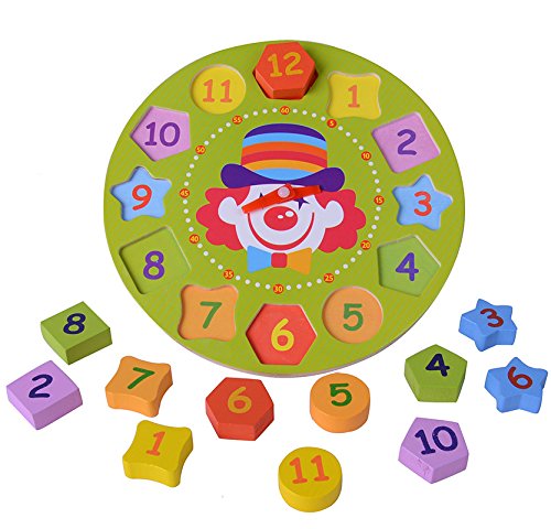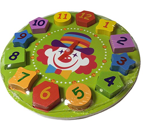 【KUENTAI】 キッズ 木製時計 おもちゃ パズルと時計で遊べる プレゼント 玩具 こども用 知育玩具 (ピエロ)