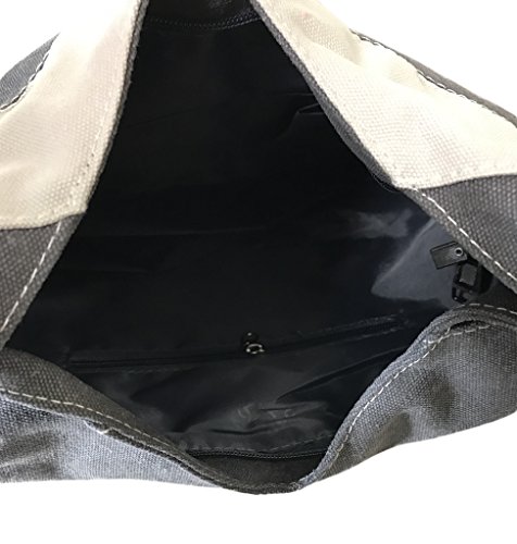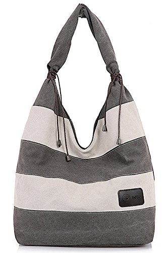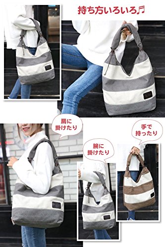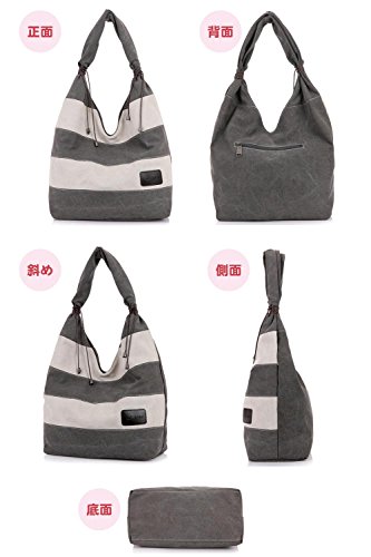 KUENTAI 斜めがけ ショルダーバッグ マザーズバッグ 軽量 大容量 ボーダー柄 レトロ 学生カバン (グレー)