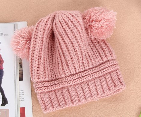 • 厚めのニットにかわいいボンボンが2つ♪
