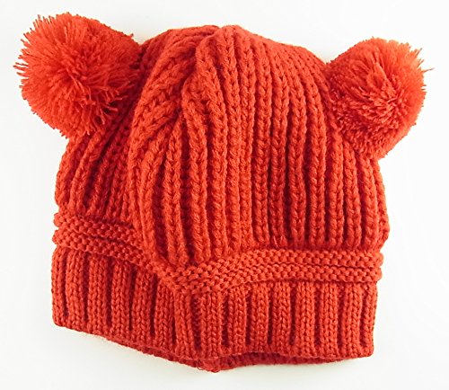 KUMBAYA ベビーニット帽 ニット帽 ダブル ボンボン キッズ ニット 男女兼用 (レッド)